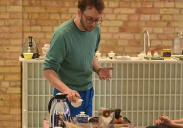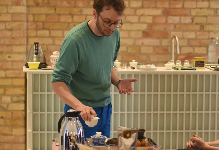 While participants are themselves engaging or learning to prepare tea in a gong fu way - Jan is sharing about the novel method of using gong fu tea preparation as a setting where art can communicate with science, and transdisciplinary exchange of ideas can happen. We talk about Artistic Biotechnology, alternative and formal education, contemporary art and ethics, fungi, fermentation and more. All while enjoying a selection of teas.